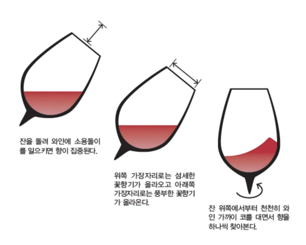 와인이 잔의 안쪽 벽면에 묻어서 점점 타고 내려오는 현상을 와인의 눈물 (=와인의 다리) 이라고 해요!