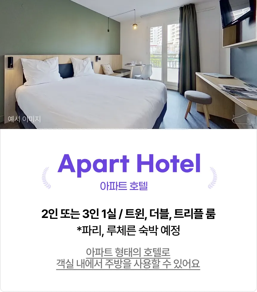취사가 가능한 아파트 호텔의 경우 조식을 제공하지 않는 곳도 있어요!