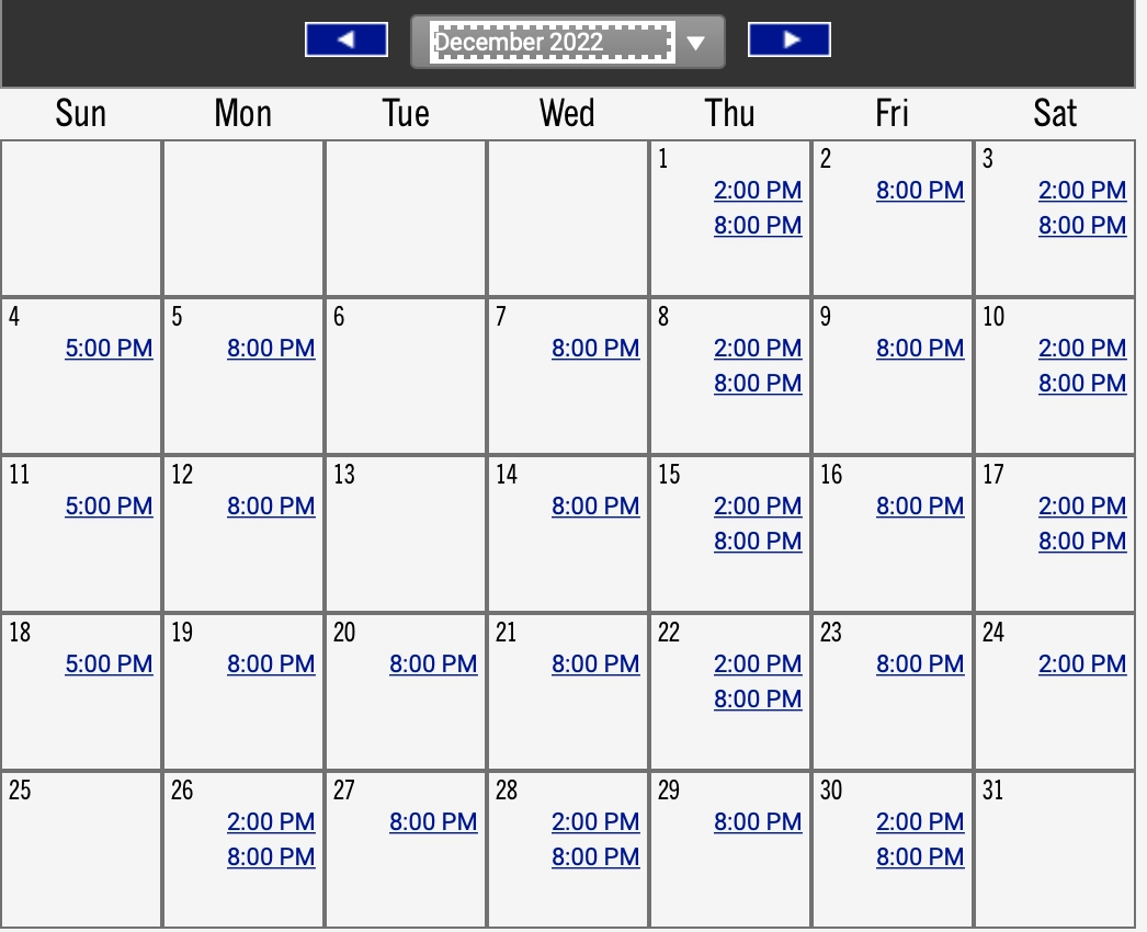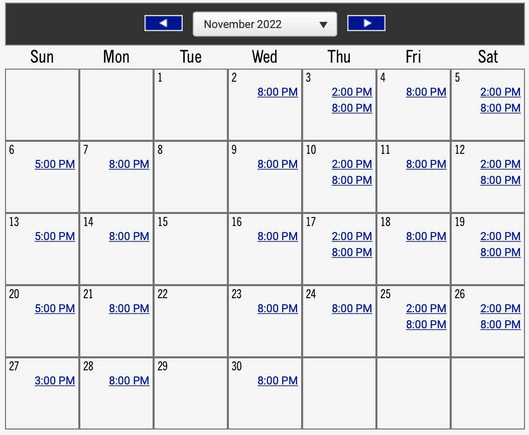 토요일: 14:00, 20:00