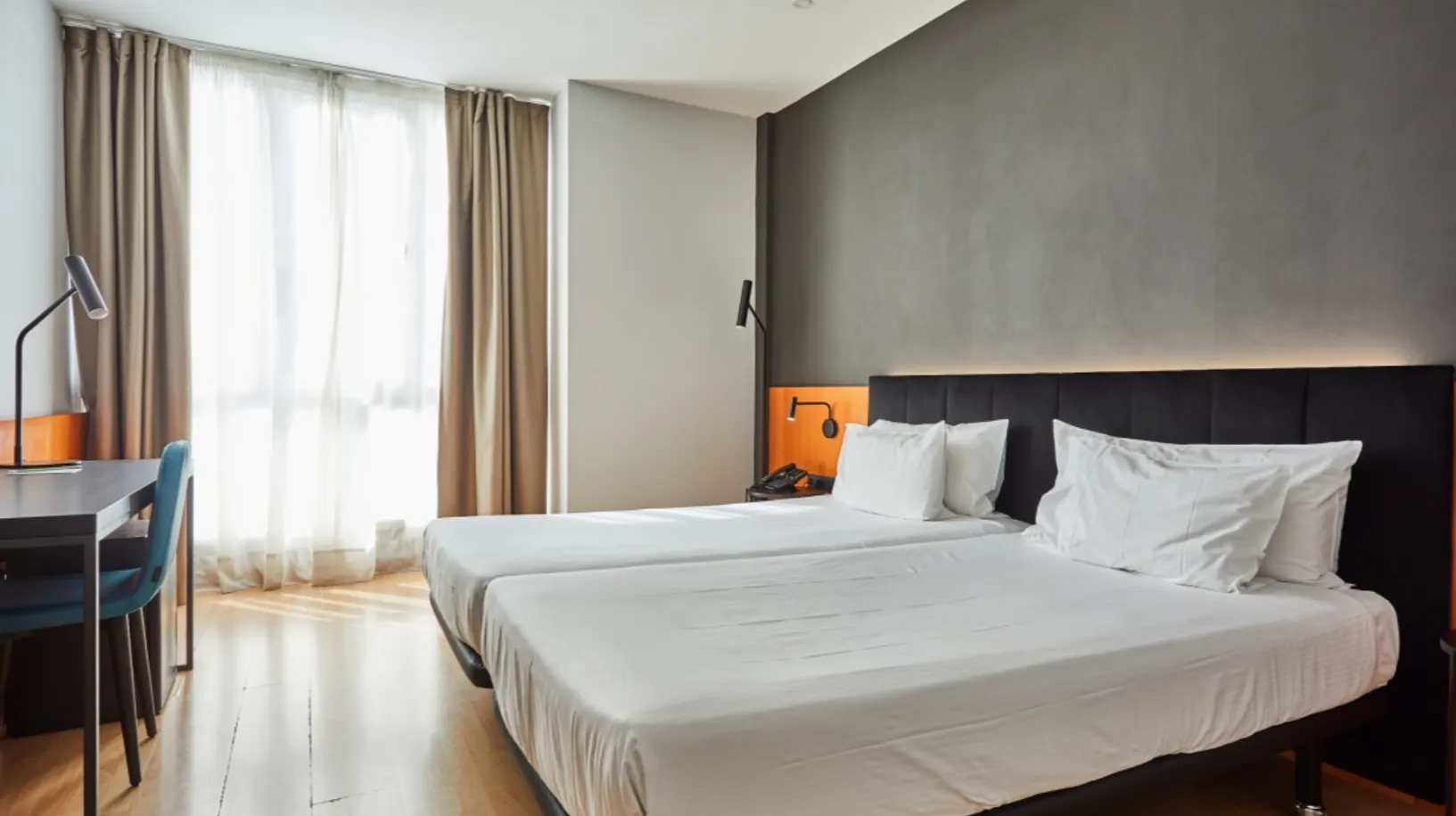 호텔 내부는 깔끔하고 현대적인 인테리어로 꾸며져 있으며, 객실마다 방음이 잘 되어 있어 쾌적한 숙박이 가능합니다. 객실 크기도 바르셀로나 중심가의 일반적인 호텔보다 여유 있는 편이고, 무료 Wi-Fi, 에어컨, 미니바, 책상 등 기본적인 편의 시설이 모두 갖추어져 있어 장기 숙박에도 불편함이 없습니다. 특히 청결 관리가 잘 되어 있다는 평이 많아, 위생을 중시하는 여행객에게 안심할 수 있는 선택지가 됩니다.