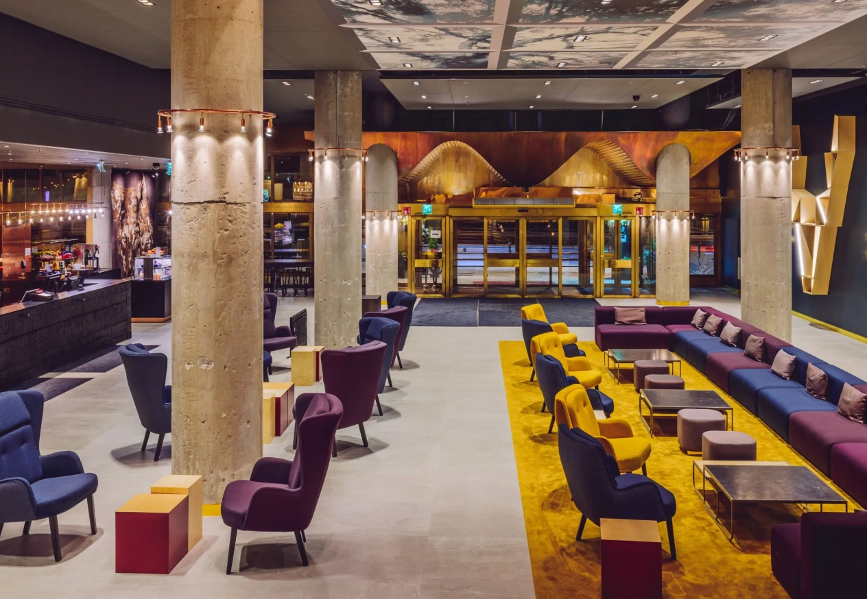 호텔 내부에는 레스토랑과 바, 사우나와 수영장 등 휴식 시설이 마련되어 있어 하루 일정을 마친 후 여유롭게 쉬기 좋습니다. 객실은 실용적이고 깔끔한 분위기로 구성되어 있어 북유럽 도시 여행에 잘 어울리는 숙소입니다.