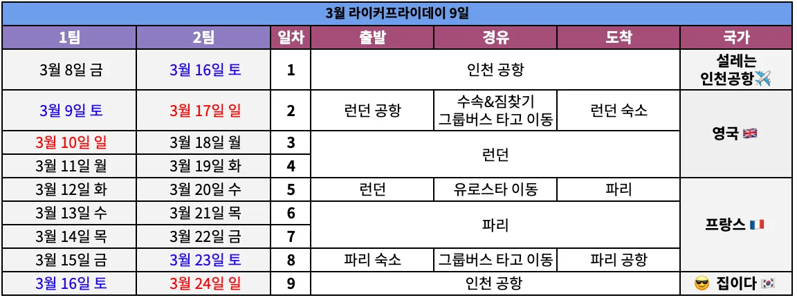 Point 02 특별한 9일?! (연차 5개로 떠나는 9일의 여행 금요일 출발 토요일 도착)