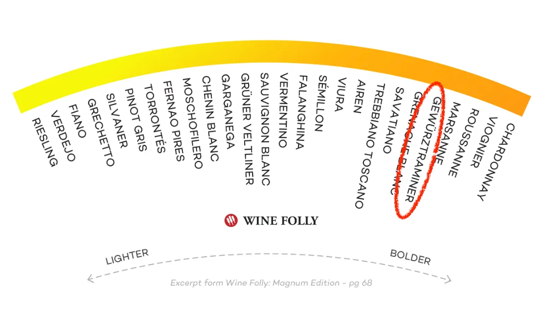 사람들의 생각과는 달리 게뷔르츠트라미너는 음식과 아주 궁합이 좋아요. 매콤한 음식과도, 커리 같이 풍미가 센 것도 좋죠.