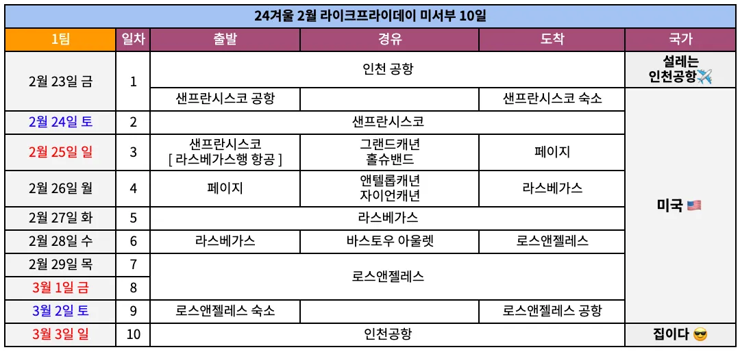 | 라이크프라이데이_미서부 10일 | 일정 다시보기