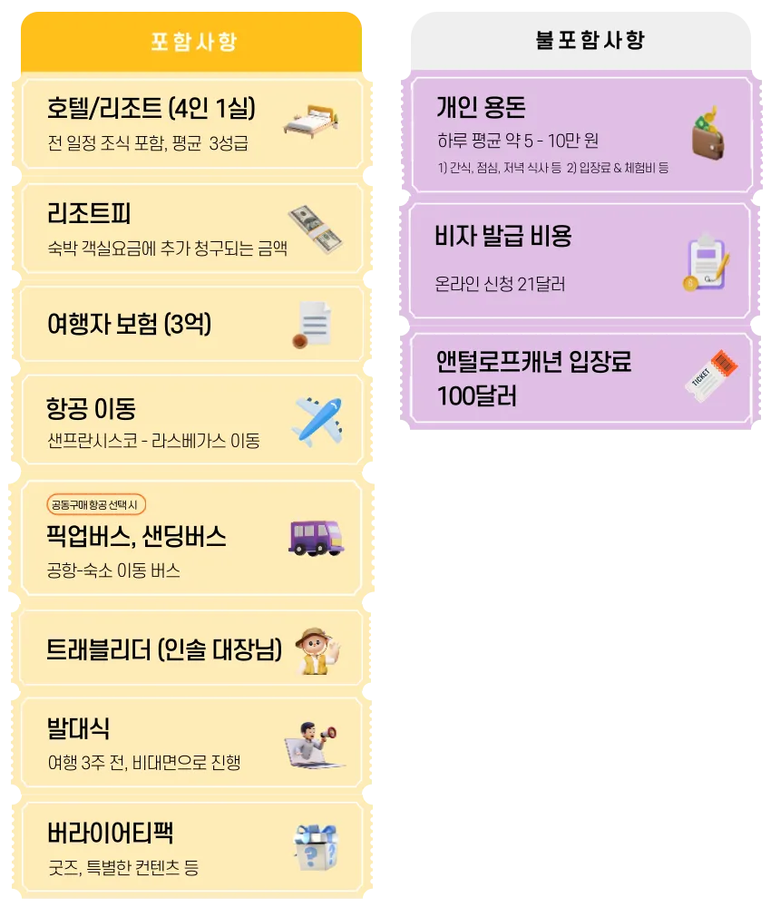 2일,4일~10일차 샌프란시스코 & 라스베가스 & 로스앤젤레스는 전일 자유 일정으로 조 별로 여행을 자유롭게 여행해요!