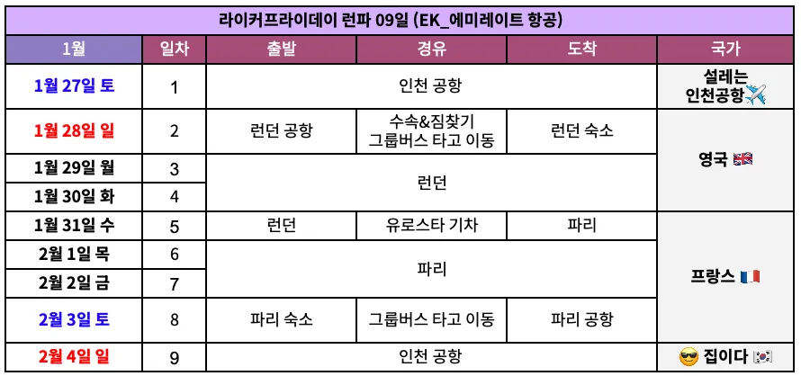 Point 02 특별한 9일?! (특별한 9일의 여행 토요일 출발 일요일 도착)