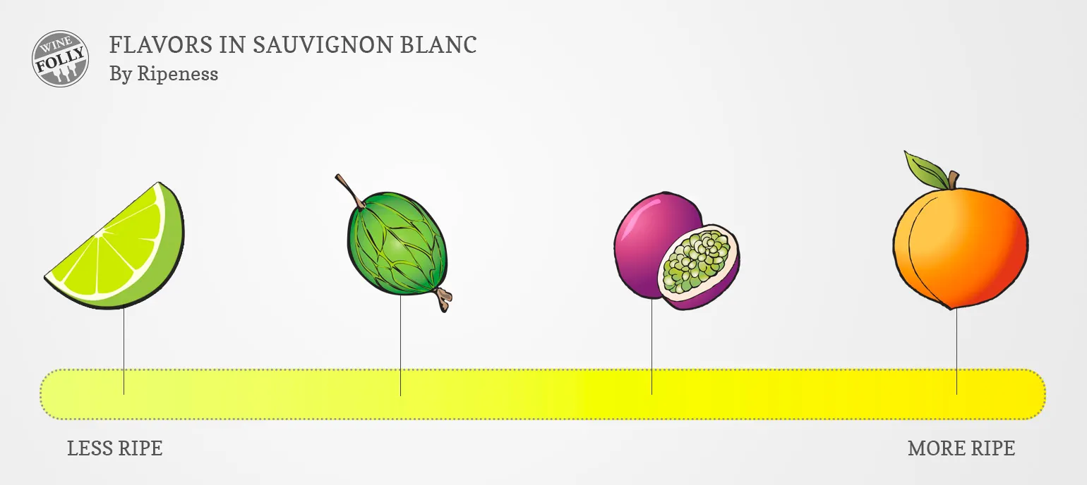 ⓷ 따뜻한 지역에서 자란 쇼비뇽블랑은 자몽, 망고 등의 열대과일 풍미가 두드러지고, 추운 지역에서 자란 쇼비뇽블랑은 피망, 청사과 등의 풍미가 두드러지는 차이가 있어요!