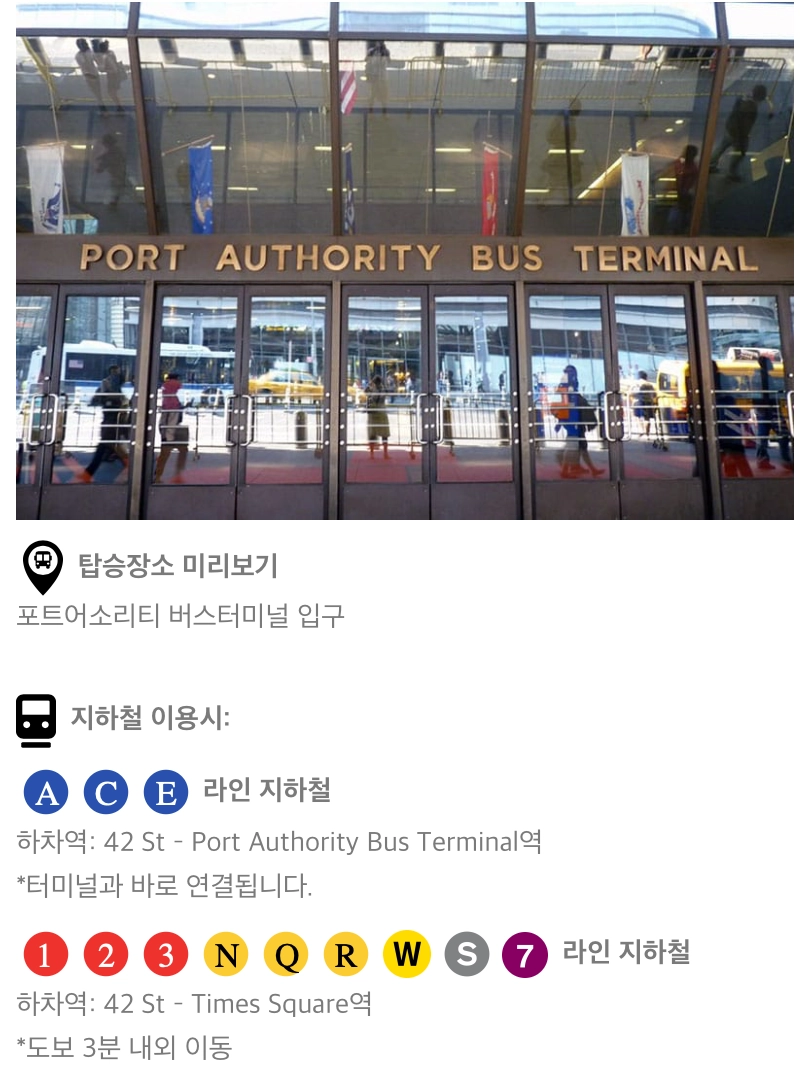 앳홈트립 이용시 버스 시간표 (아래 뉴욕버스사이트 시간표와 동일한 버스)
