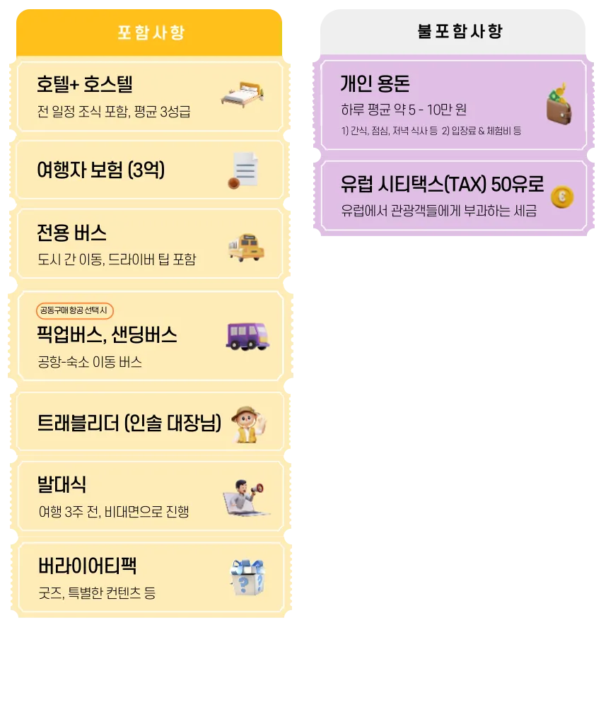 포함 & 불포함 사항