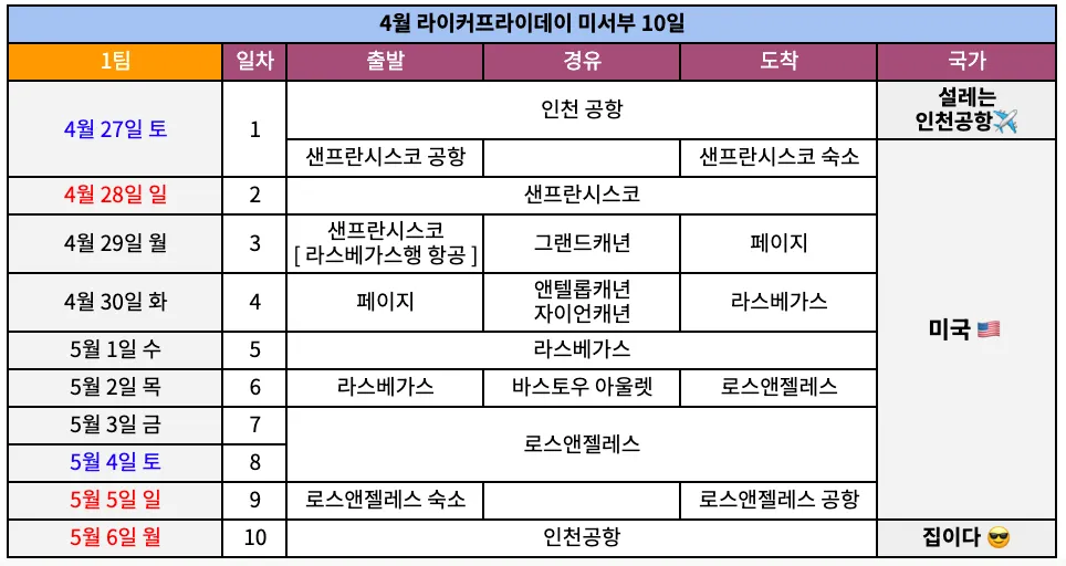 | 라이커프라이데이_미서부 10일 | 일정 다시보기