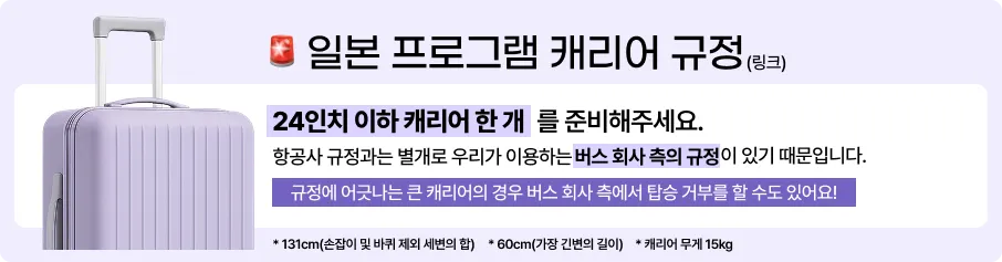 모두의 여행이 즐거울 수 있도록 캐리어 규정을 꼭 지켜주세요!