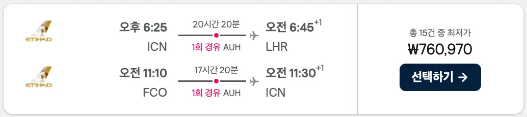 런던 여행 포함 여부에 따라 가격 차이가 많이 납니다!