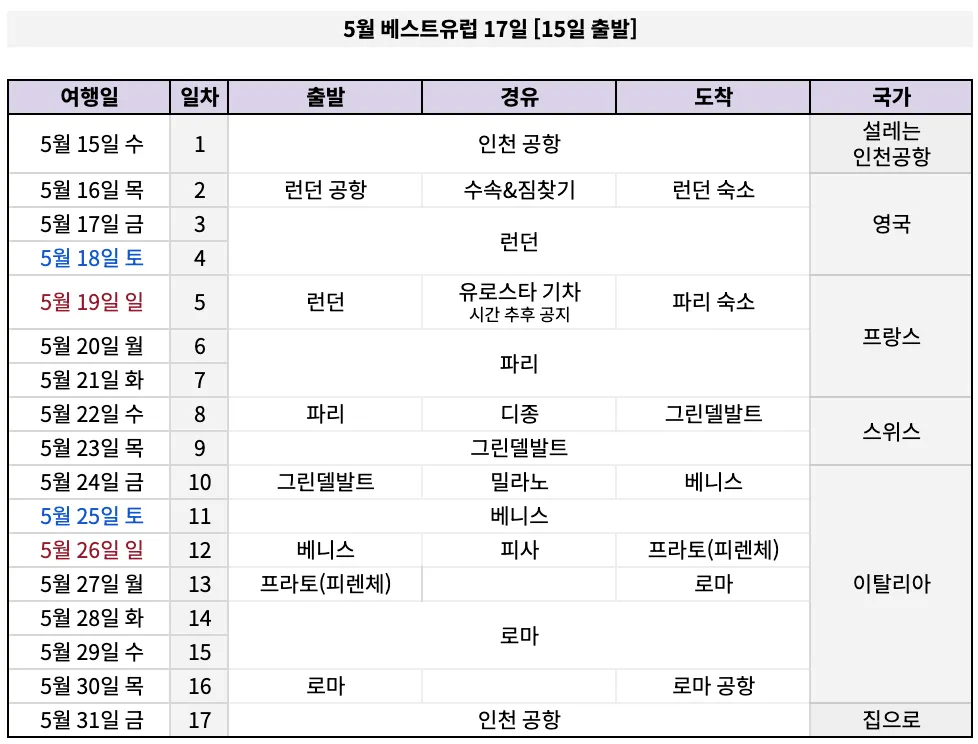 베스트유럽 2주 경유 도시