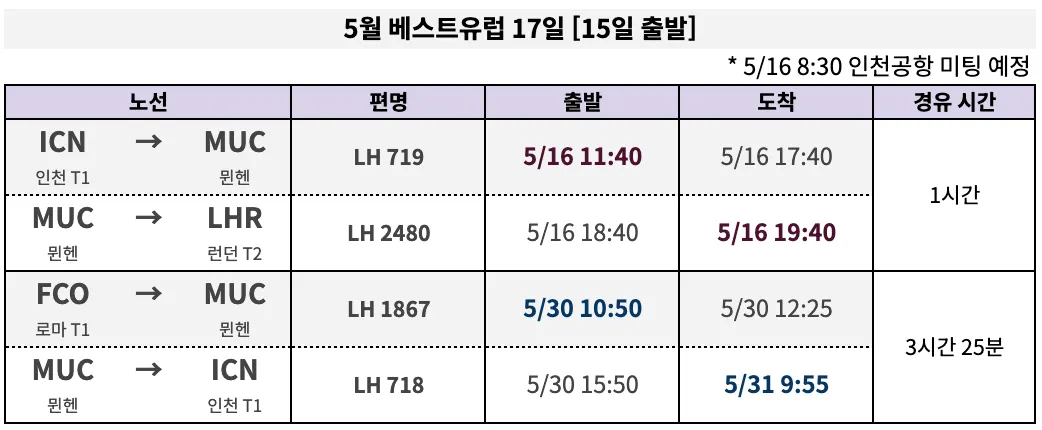 [베스트유럽17] 5/15 출발 | 135만 원 (루프트한자)