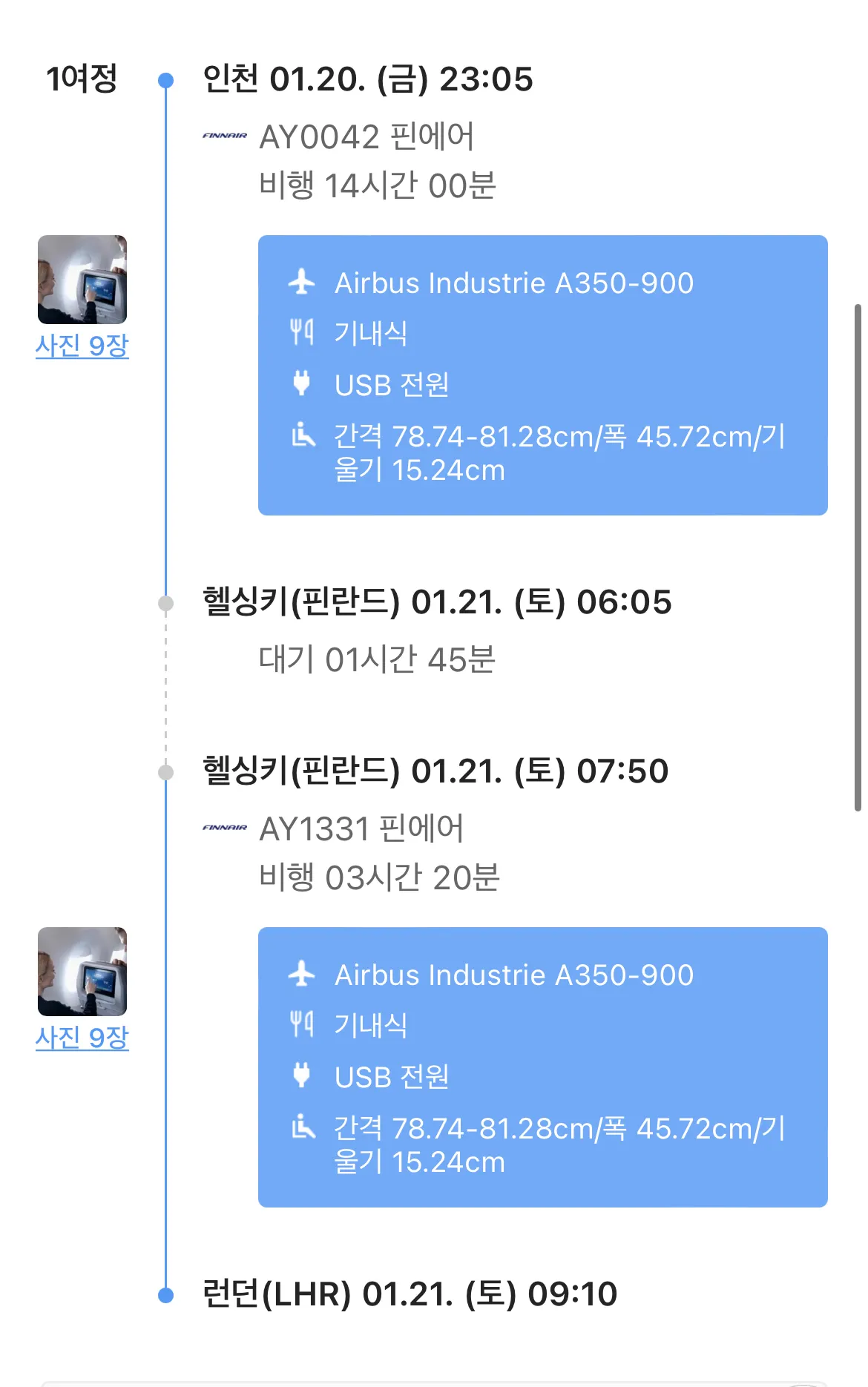 출국 항공편, 입국 항공편 모두 올려주세요.