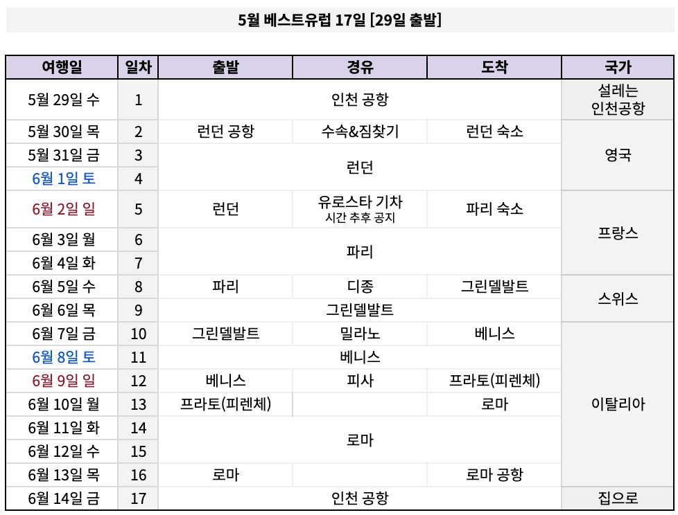 첫 유럽이라 핵심 서유럽은 모두 여행 하고 싶어요.