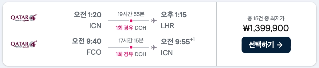 런던 여행 포함 여부에 따라 가격 차이가 많이 납니다!