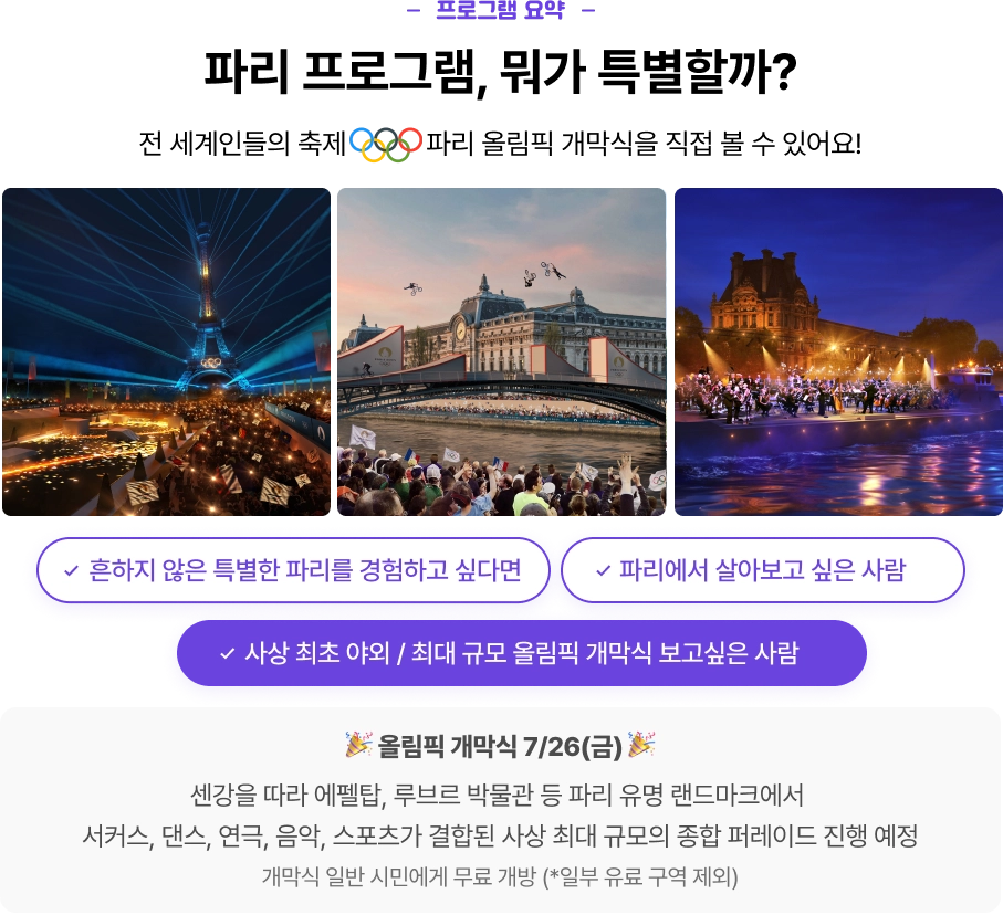 7/26(금) 세계인의 축제! 파리 올림픽의 개막식을 볼 수 있어요!