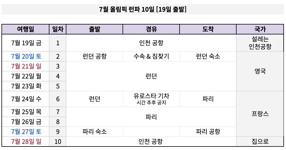 여행도시 | 2개국 2개 도시 (런던-파리) |