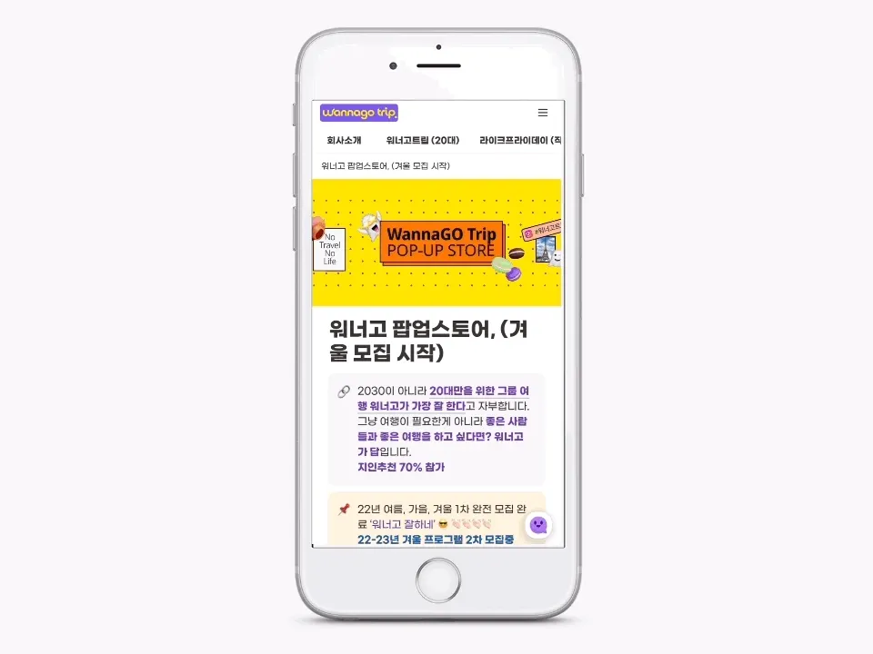 워너고트립 홈페이지에서 지원하고자 하는 프로그램을 선택 후, [지원하러가기] 클릭!