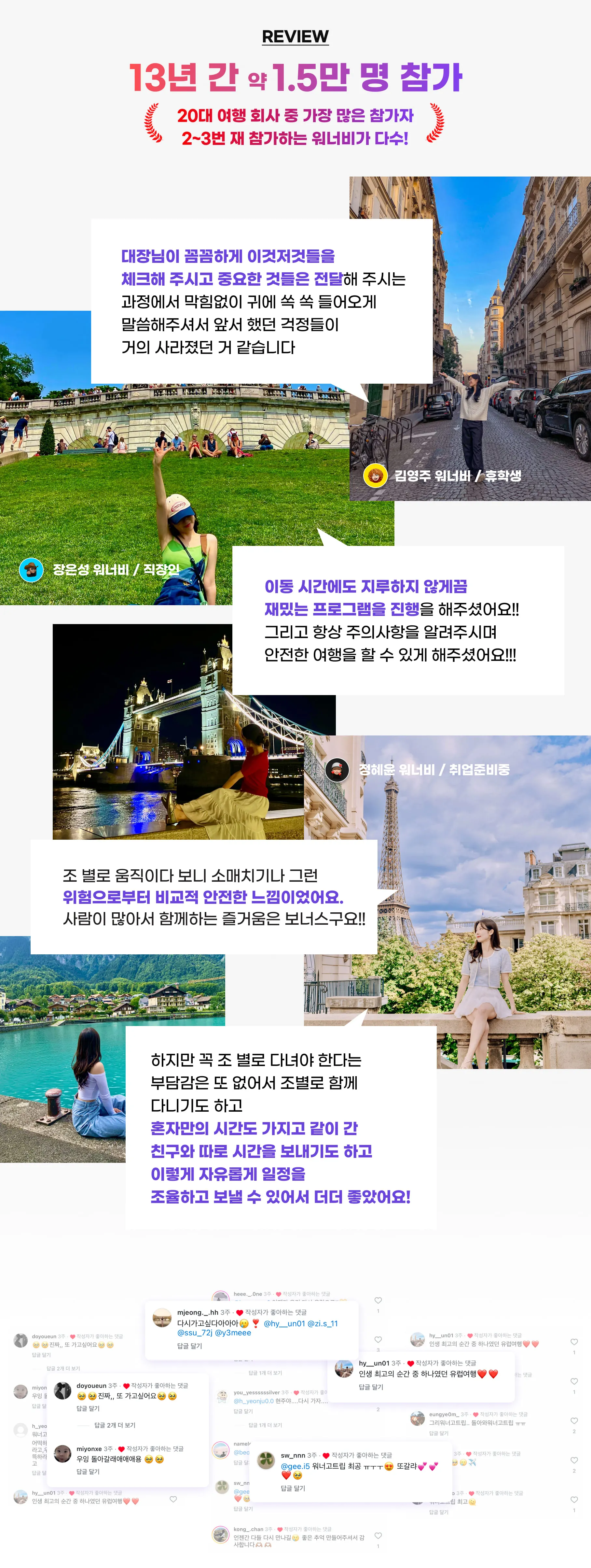 서유럽 20~29살 20대만가능 자유여행 조별4~8명 따로또같이여행 전용버스 전문드라이버 전문인솔자 혼자 지원 80%이상 지인추천 70%이상 시그니처