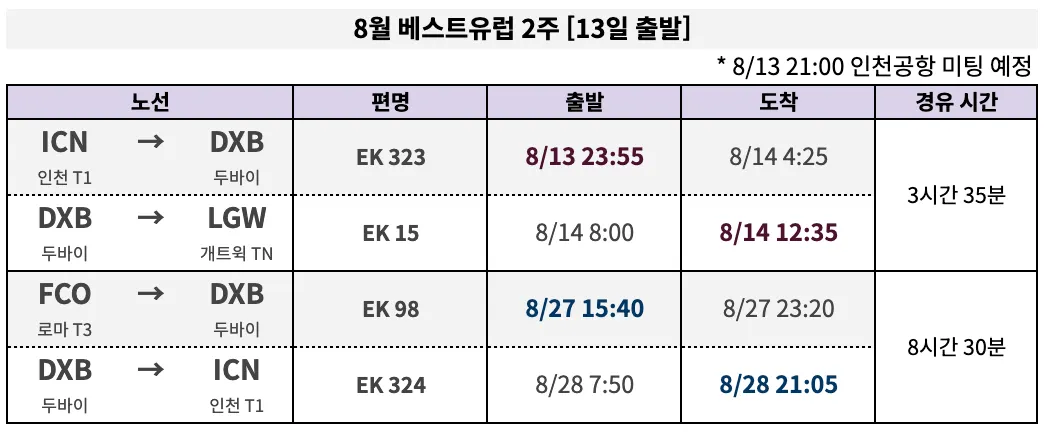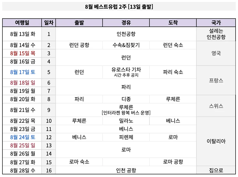 [베스트유럽 2주] 8/13 출발 | 143 만 원 (에미레이트)