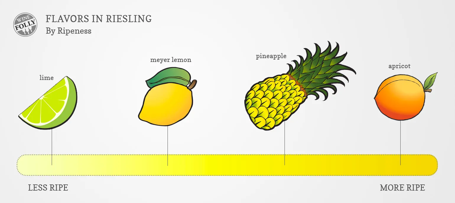 ⓵ 일찍 수확한 리슬링은 사과 풍미가, 라임이나 레몬 풍미가 좋고 늦수확한 리슬링은 시트러스, 복숭아 풍미가 진해요.