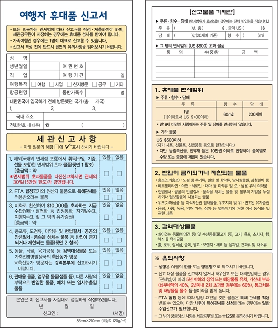 한국 입국시 Q-code 건강상태 입력 혹은 건강상태 질문서(기내에서 제공) 작성하여 제출.