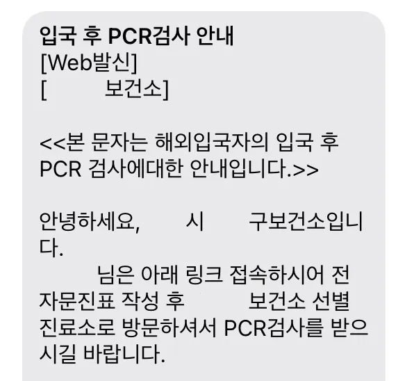 입국 1일차 PCR 검사 필수 (내국인은 무료 / 여권+보건소 발신 문자 제시)