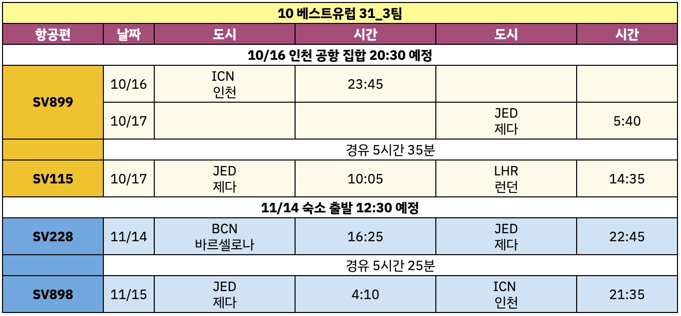 단체 항공권 - 사우디아 항공 / 픽업&샌딩버스 포함