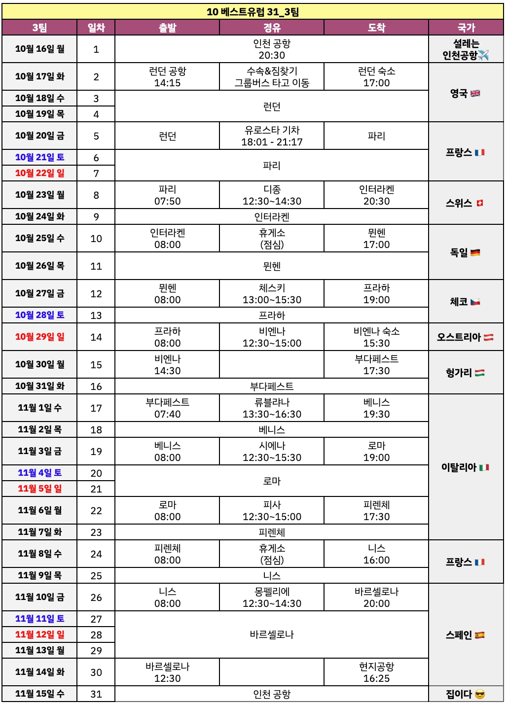 | 베스트유럽 31일_3팀 |