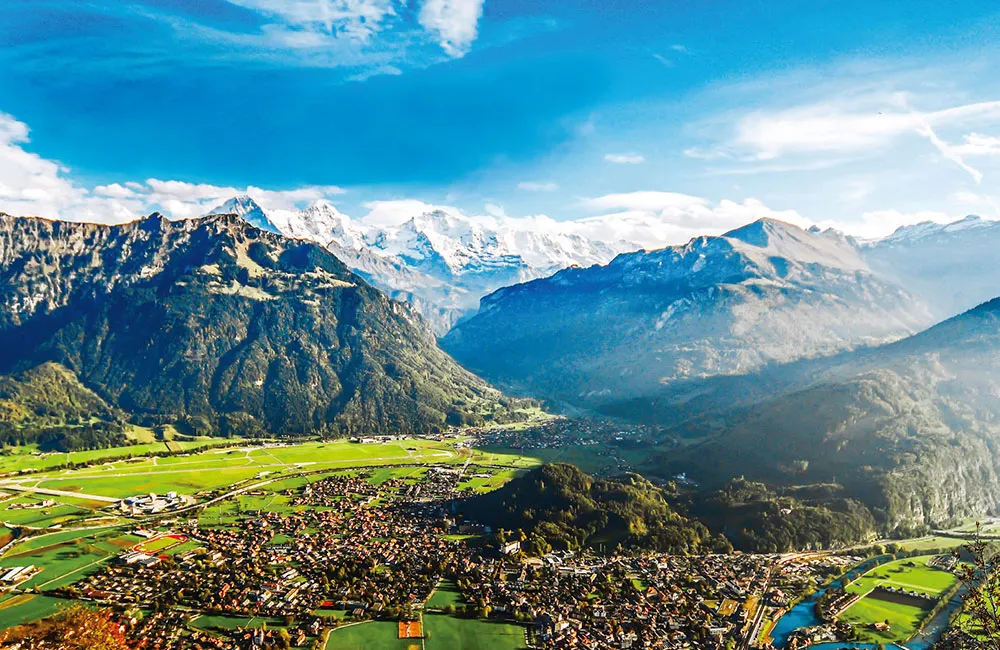 인터라켄은 ‘사이’를 뜻하는 ‘인터’와 ‘호수’를 뜻하는 ‘라켄’이 합쳐진, 말 그대로 호수 사이에 위치한 마을입니다.