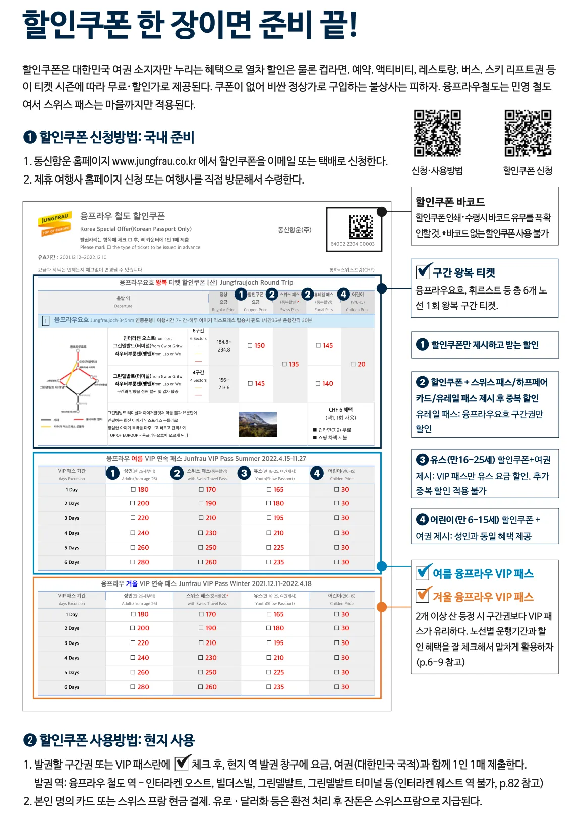 융프라우 할인쿠폰 사용 방법